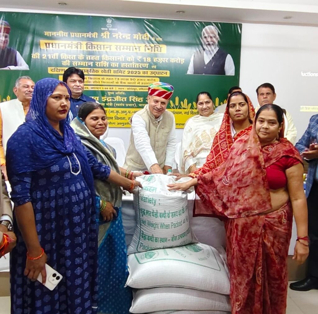 राव इंद्रजीत सिंह ने कहा कि केंद्र सरकार और हरियाणा सरकार दोनों मिलकर खेती को आधुनिक, लाभकारी और टिकाऊ बनाने के लिए काम कर रही हैं। केंद्र सरकार ने प्रधानमंत्री फसल बीमा योजना, पीएम-किसान, किसान क्रेडिट कार्ड विस्तार, ड्रोन आधारित कृषि सहायता, मिलेट्स को अंतरराष्ट्रीय स्तर पर बढ़ावा देने और एग्री-स्टार्टअप्स को प्रोत्साहन जैसी कई ऐतिहासिक पहलें की हैं। इससे किसानों को आधुनिक तकनीक, जोखिम-रहित फसल सुरक्षा और बाजार में बेहतर अवसर मिल रहे हैं। हरियाणा सरकार ने भी पराली प्रबंधन, सूक्ष्म सिंचाई प्रणाली, फसल विविधीकरण (विशेषकर धान क्षेत्र में कमी), मंडियों के डिजिटलीकरण और कृषि यंत्रों पर सब्सिडी जैसे कदम उठाए हैं। राव ने कहा कि इन नीतियों का उद्देश्य किसान को उत्पादन से लेकर विपणन तक हर स्तर पर सशक्त बनाना है, ताकि हरियाणा का किसान न सिर्फ आत्मनिर्भर बने बल्कि अपने परिवार और समाज को भी आर्थिक रूप से मजबूत कर सके। केंद्रीय मंत्री ने इस अवसर पर कृषि विज्ञान केंद्र द्वारा तैयार किए गए गेहूं के विशेष वैरायटी एचडी 3298 भी वितरित की।