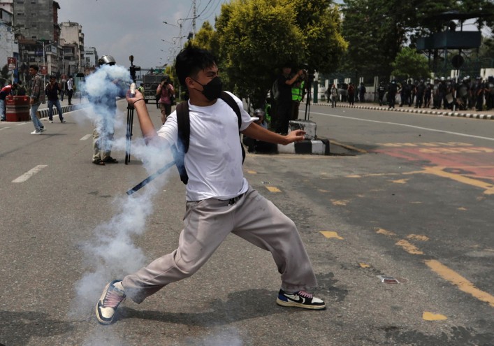 नेपाल में प्रदर्शनकारियो ने हथियार छोड़कर उठाया झाड़ू।