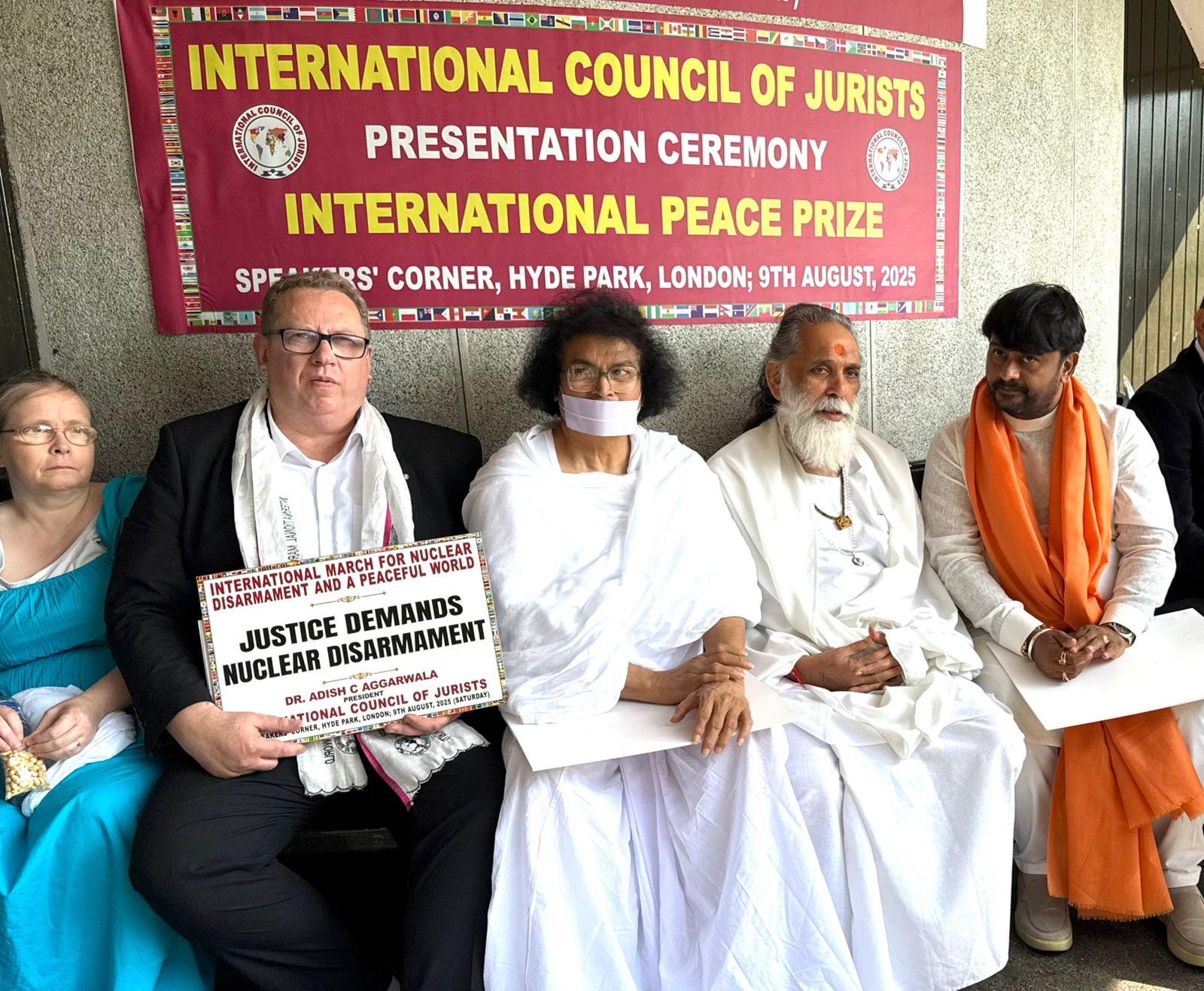 लंदन/ नई दिल्ली, 10 अगस्त 2025: विश्व शांति दूत आचार्य लोकेशजी को लंदन में आयोजित “परमाणु निरस्त्रीकरण और शांतिपूर्ण विश्व के लिए अंतर्राष्ट्रीय मार्च” के दौरान प्रतिष्ठित “अंतर्राष्ट्रीय शांति पुरस्कार” से अंतर्राष्ट्रीय न्यायविद परिषद सम्मनित किया गया । लंदन के हाइड पार्क में आयोजित कार्यक्रम में नोबेल पुरस्कार विजेता आध्यात्मिक गुरु परम पूज्य दलाई लामा जी एवम मलाला यौसफ्जई को भी सम्मानित किया गया । इस अवसर गीता मनीषी स्वामी ज्ञाननंद जी महाराज, सनातन भूषण पूज्य राजराजेश्वर गुरुजी, आईसीजे के अध्यक्ष डॉ आदीश अग्रवाल, महावीर फ़ाउंडेशन के अध्यक्ष यूके के अध्यक्ष श्री नीरज सुतरिया उपाध्यक्ष श्री मुकेश कपासी सहित अनेक प्रख्यात लोग शामिल रहे |