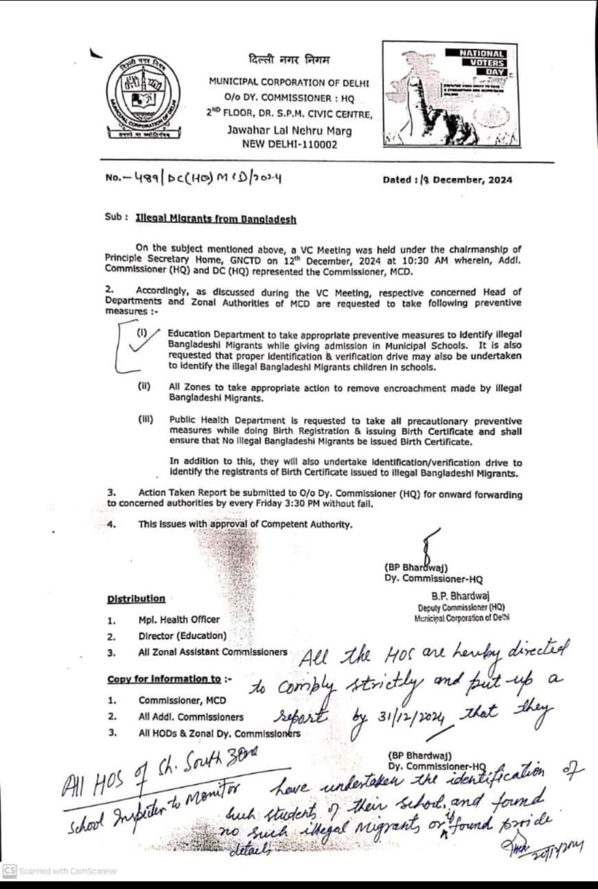 MCD के उप आयुक्त बी.पी. भारद्वाज ने कहा, “शिक्षा विभाग को म्यूनिसिपल स्कूलों में प्रवेश के समय अवैध बांग्लादेशी प्रवासियों की पहचान करने और निवारक उपाय करने चाहिए। इसके अलावा, अवैध प्रवासी बच्चों की पहचान और सत्यापन के लिए अभियान चलाया जाना चाहिए।”
